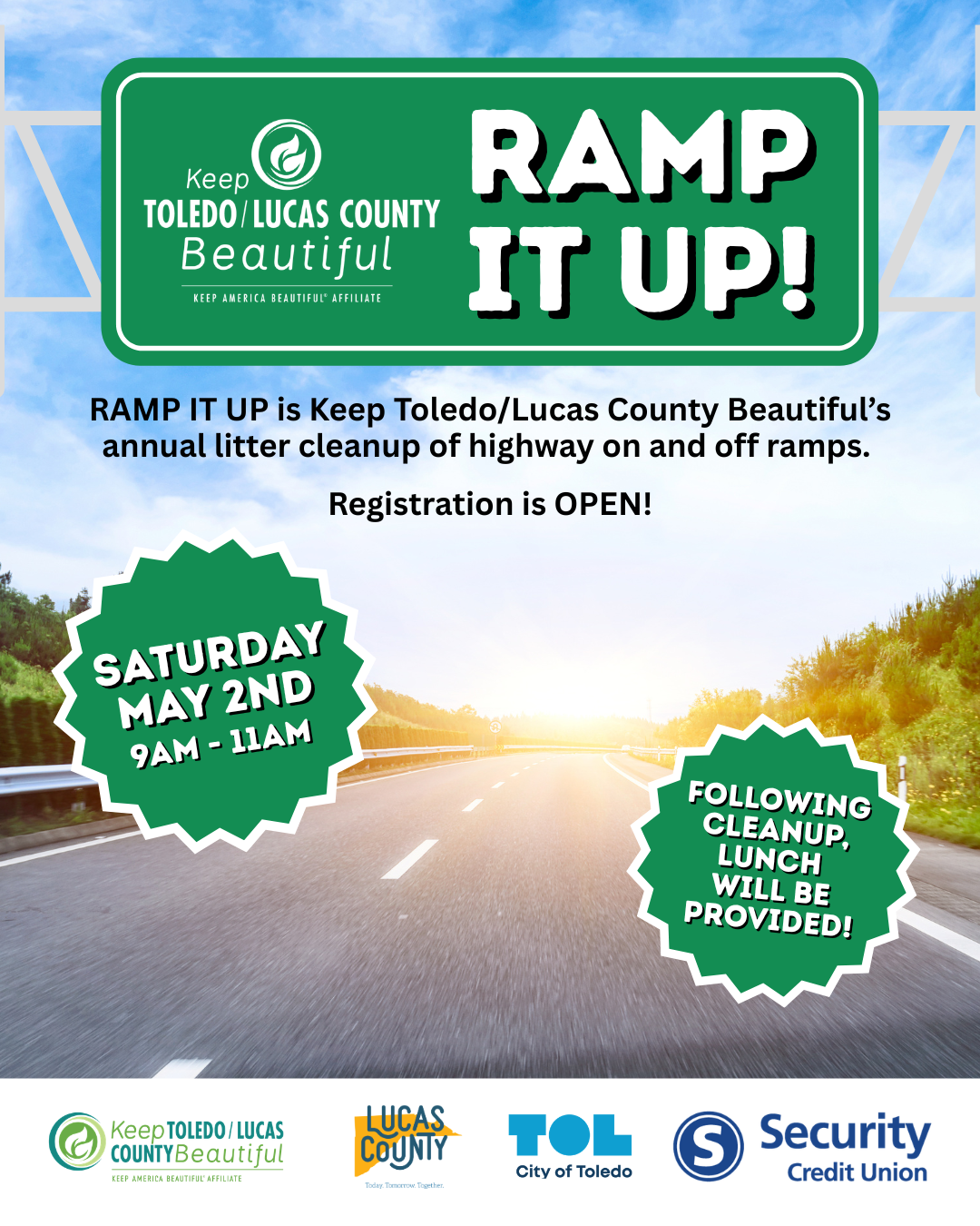 Join Keep Toledo/Lucas County Beautiful and help us pick up litter along highway on and off ramps! Our Ramp It Up cleanup is a one-day event focused just on these highly littered areas.